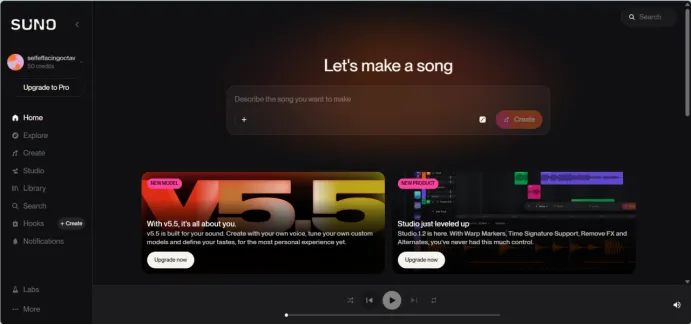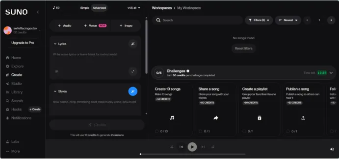 这一块的本质很简单:我们把想法输进去,Suno 再帮我们把它变成歌。