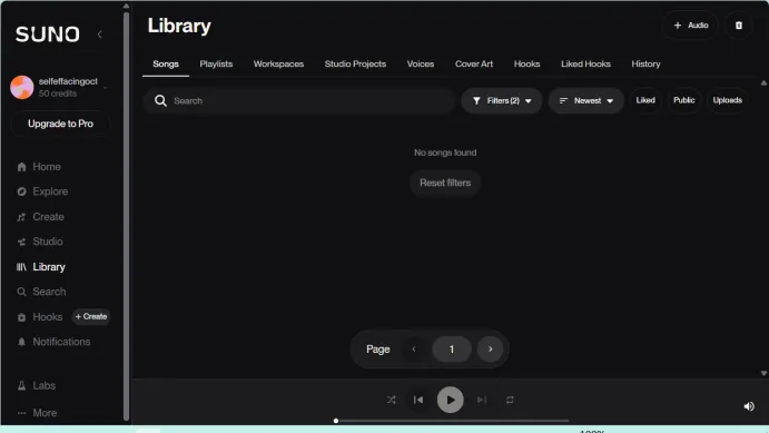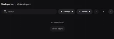 No songs found 结果提示,表示当前还没有生成内容,或者筛选之后暂时没有符合条件的歌曲。