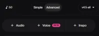 Advanced高级模式,适合想更细致控制歌曲内容的人,可以更明确地写歌词、风格和参考方向。