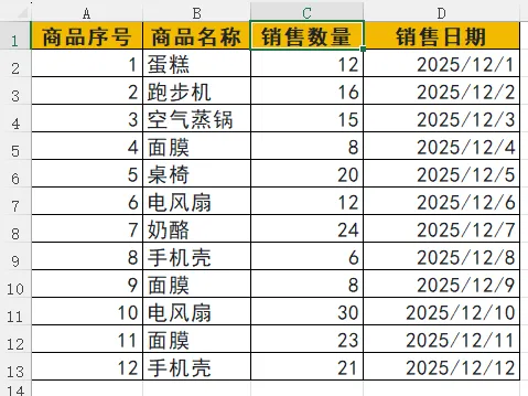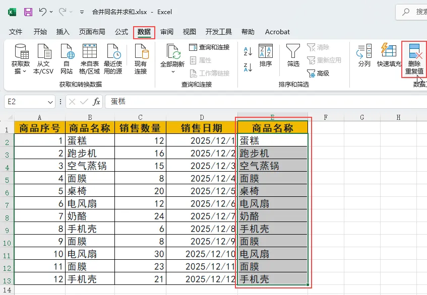 我们以「2025 年 12 月商品销售明细」为例,需要将相同商品的销售数量合并求和,得到一份清晰的销售汇总表。