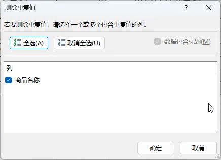 💡 作用:这一步是为了生成汇总表的 “商品名称” 列,避免重复统计。