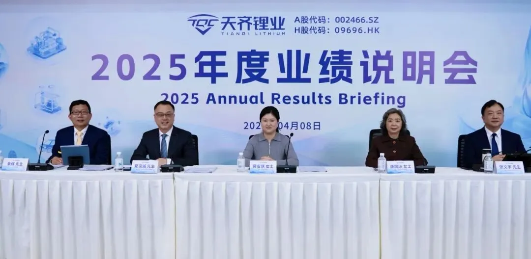 4月8日下午,天齐锂业2025年度业绩说明会在成都总部顺利召开。本次会议采用现场会议与线上同步直播的形式举办,董事长蒋安琪女士,董事、总经理夏浚诚先生,董事会秘书、副总经理、香港联席公司秘书张文宇先生,财务负责人、副总经理朱辉先生,独立董事唐国琼女士出席本次会议,与广大投资者展开高效、实时的互动交流。
