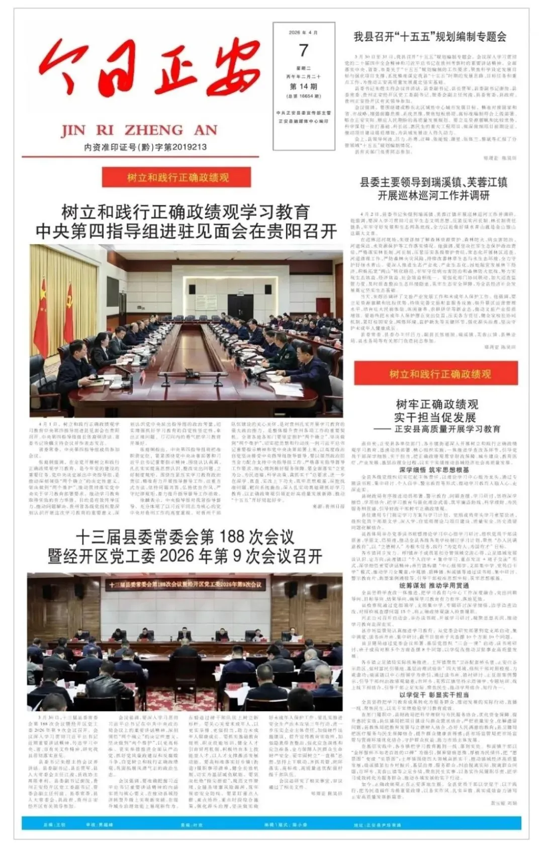 2026年第14期《今日正安》电子版新鲜出炉,点开看看吧~ 各位《今日正安》的忠实粉丝们 2026年第14期电子版新鲜出炉啦! 小编在此奉上各版面截图 各位看官是不是意犹未尽呢? 点击文末的“阅读原文”即可进入 《今日正安》电子版链接 在界面里,点击右下角的“往期” 还可翻阅之前的《今日正安》内容哦~ 综合整理:陈小娄 往期精彩推荐 悦遵义 · 赴春约 | 春风有信,花下有约:赴一场桐花里的“村Rock”音乐会 【春耕备耕】正安县供销社:三级联动保农资 护航春耕稳生产 【春耕备耕】正安县:人勤春来早 辣椒育苗正当时 主办 : 中共正安县委 正安县人民政府 承办 : 正安县融媒体中心 监制 : 陈露露 总编 : 王 锐 审核 : 杜燕子 编审 : 叶 欢 编辑 : 陈小娄