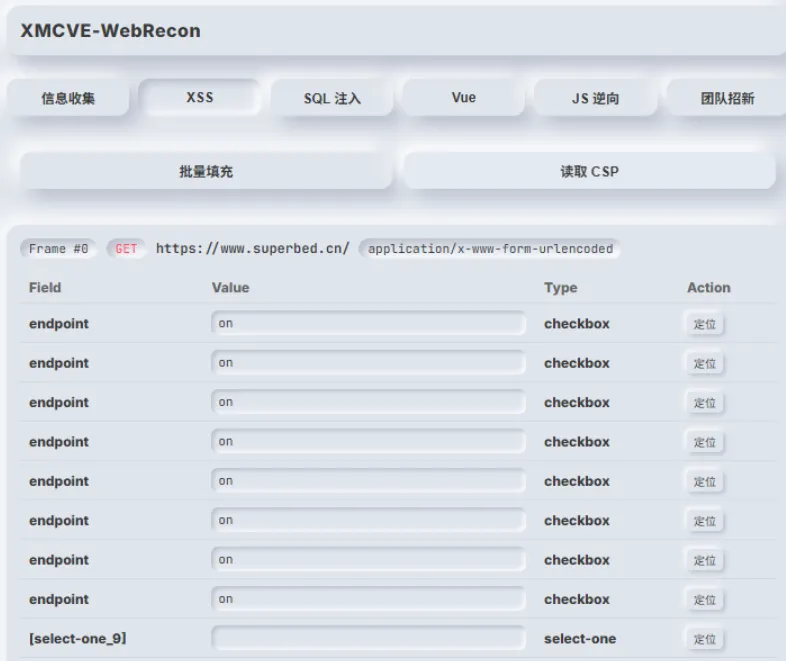 XSS:批量填充、读取 CSP、查看表单与 URL 参数