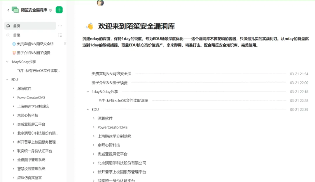 1day&0day分享EDU学校相关漏洞Web应用漏洞CMS漏洞OA产品漏洞中间件漏洞云安全漏洞人工智能漏洞其他漏洞