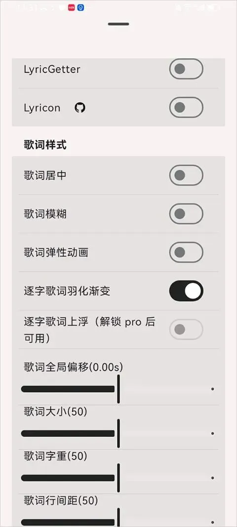 3、app中的歌词功能十分强大,可以对歌词进行多样化设置