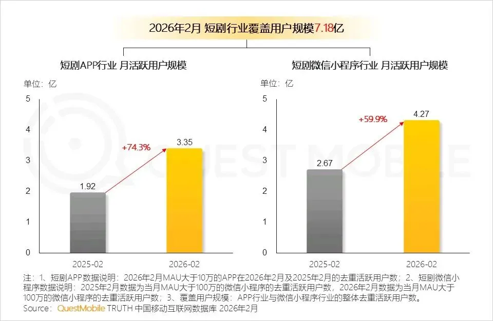 3.04亿什么概念?跟拼多多早期某个阶段的体量差不多。QuestMobile发布的报告显示,短剧行业现在月活加起来有7.18亿。也就是说,每两个中国人里就有一个在看短剧。关键是这App 2023年8月才上线,两年半时间从千万级涨了30倍。现在它已经成了字节跳动旗下第五款日活过亿的独立App。
