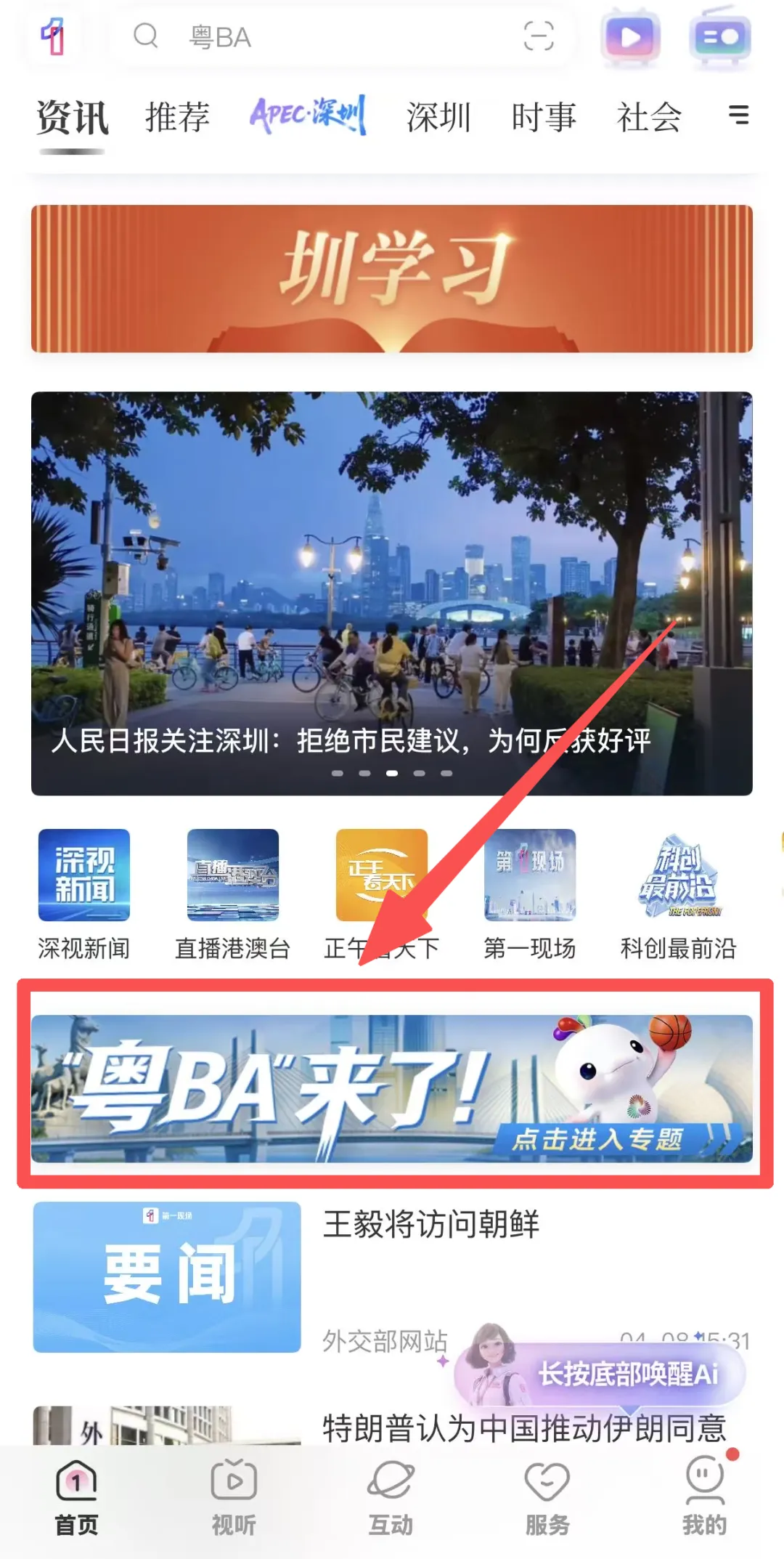 点击底部菜单【首页|资讯】入口——点击进入“粤BA来了!”专区