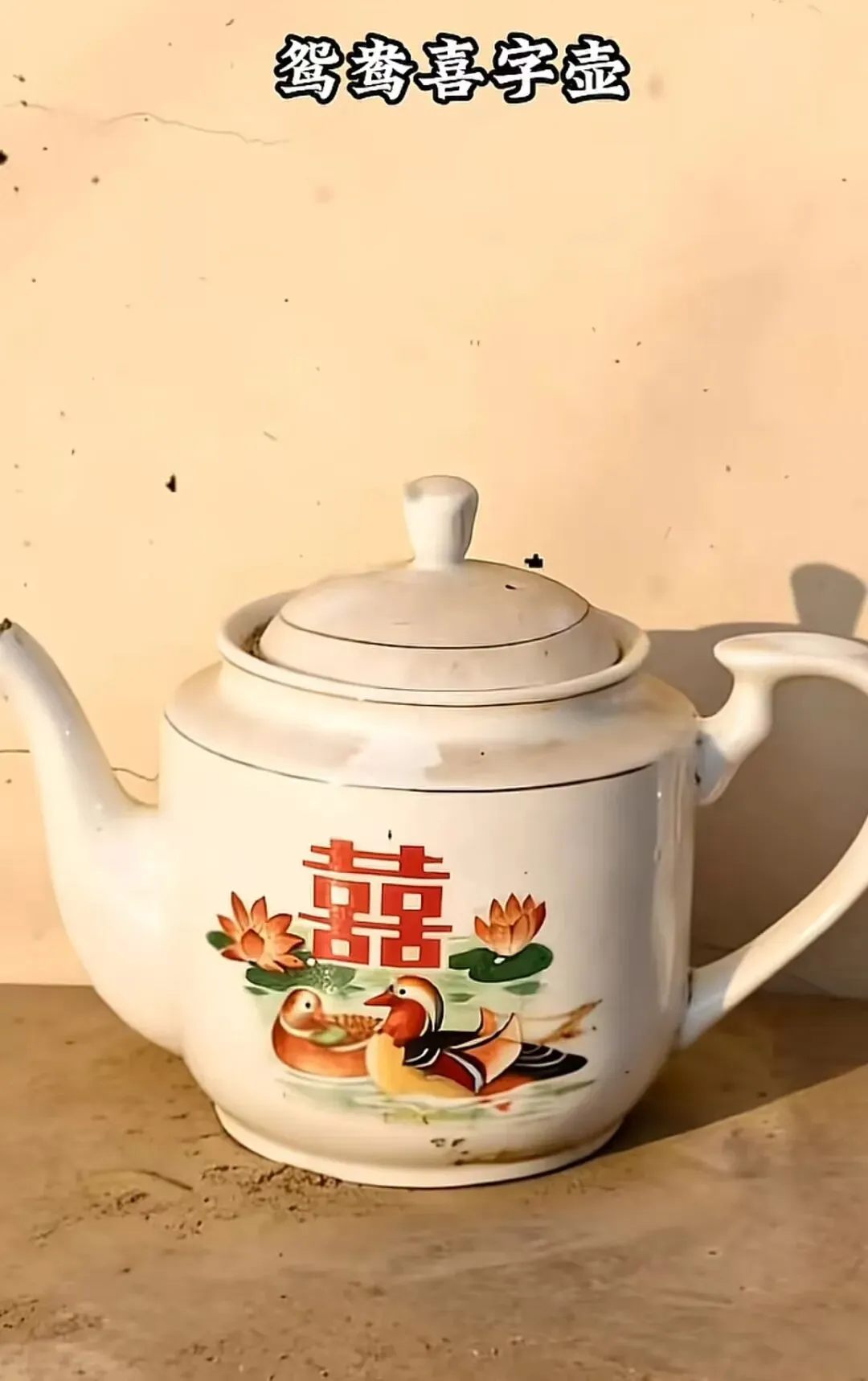 鸳鸯喜字壶,是那个年代婚礼上最喜庆的标配,瓷质的壶身,绘着成双成对的鸳鸯,印着大大的红喜字,满是吉祥喜庆的寓意。几乎每一户新婚家庭,都会有这样一把茶壶,它是婚礼的见证,是幸福的象征。平日里被好好摆放着,招待客人时,用它泡上一壶热茶,满是仪式感。壶身的红漆渐渐褪色,鸳鸯图案也变得模糊,可它依旧带着当初的喜气,静静摆在角落里。它见证过无数家庭的喜事,承载着对美好生活的期许,藏着老一辈相濡以沫的爱情,每次看到,都能感受到那份浓浓的喜庆与温情。