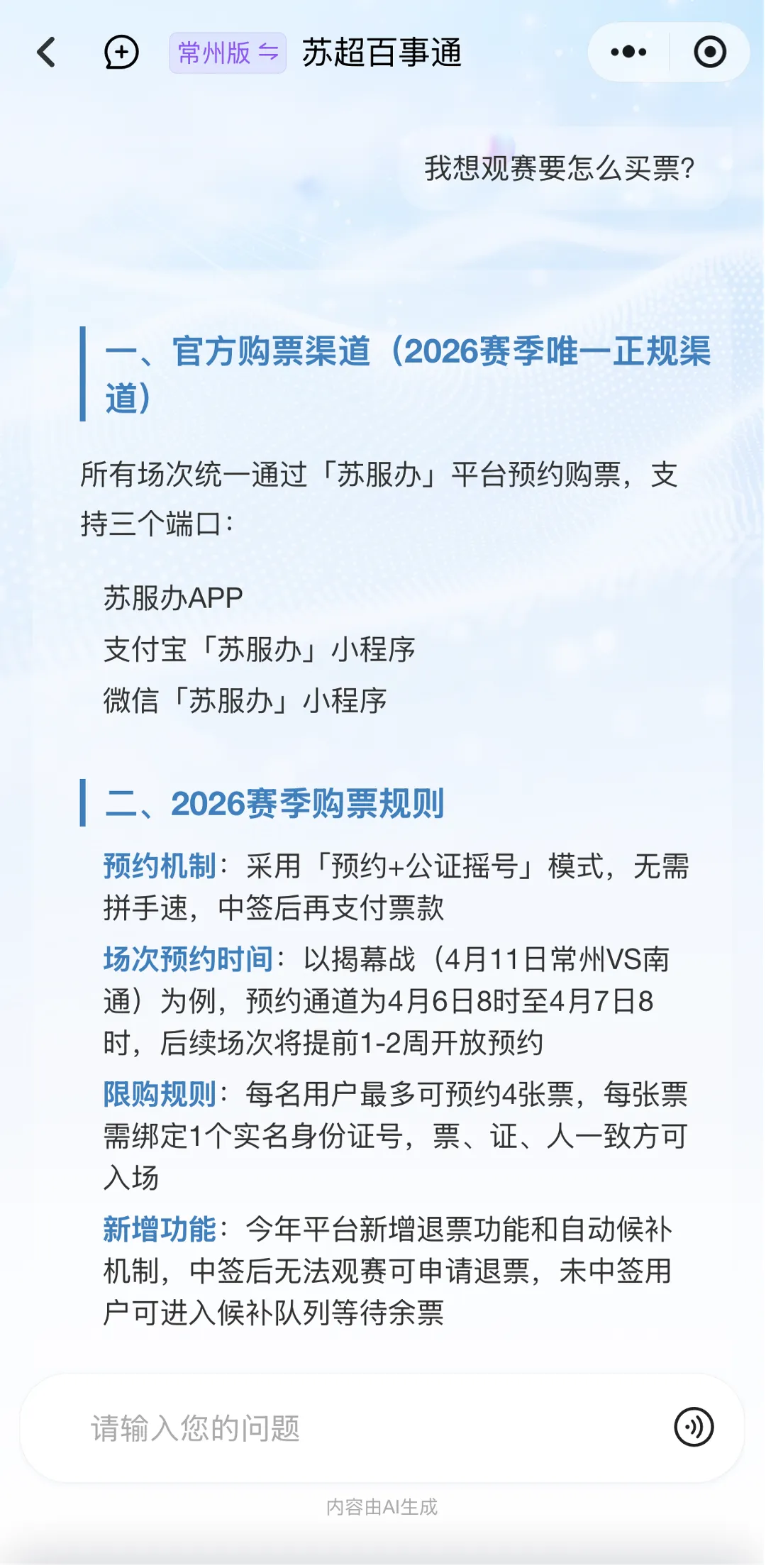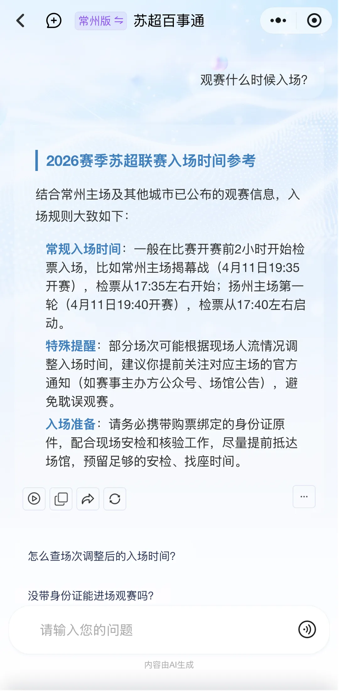 “苏超百事通”AI智能助手——你的全能观赛搭子