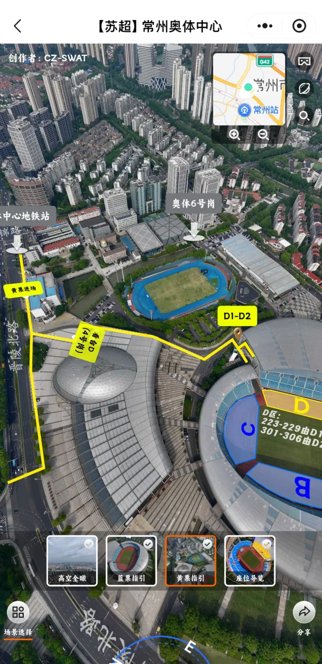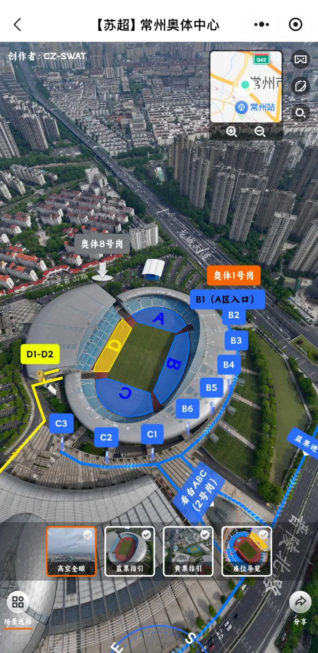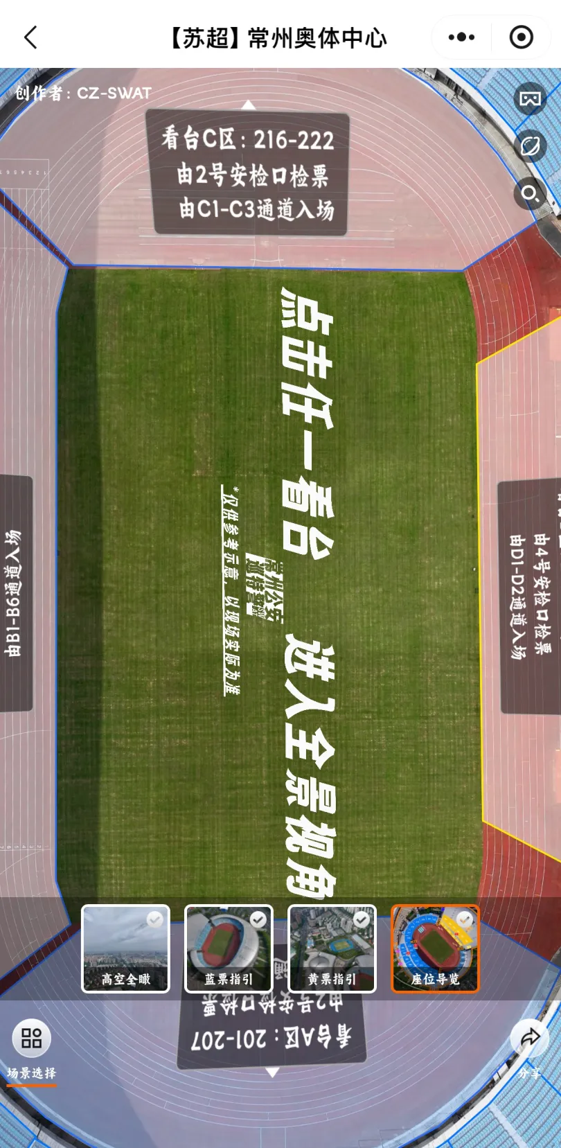 1.高空全瞰:帮助球迷快速掌握场馆全局,一眼看懂场馆怎么走。