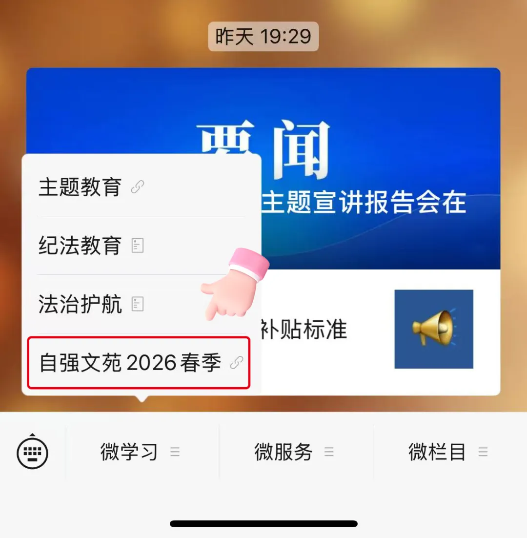 点击微信公众号菜单栏“微学习”
