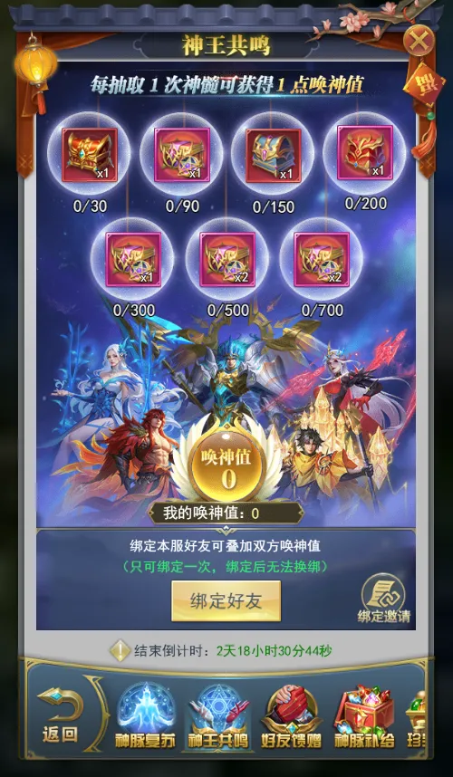 绑定后,双方所累积的唤神值,及后续获得的唤神值将叠加共享。