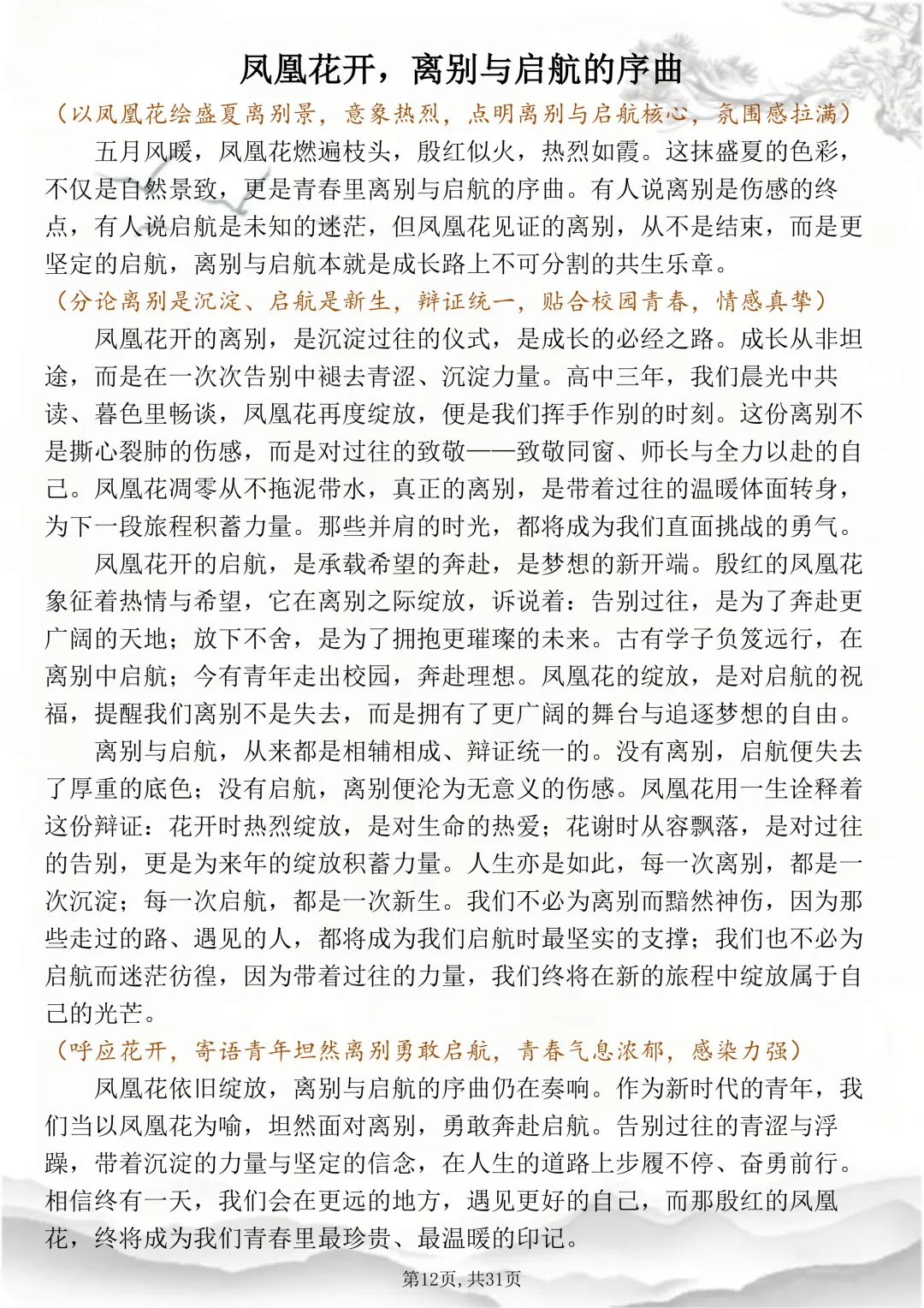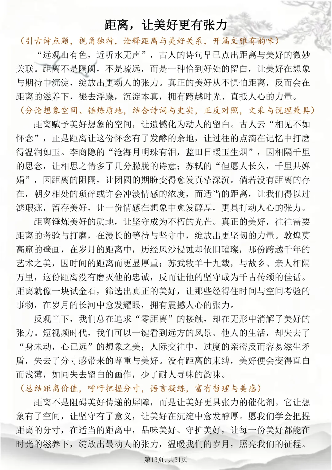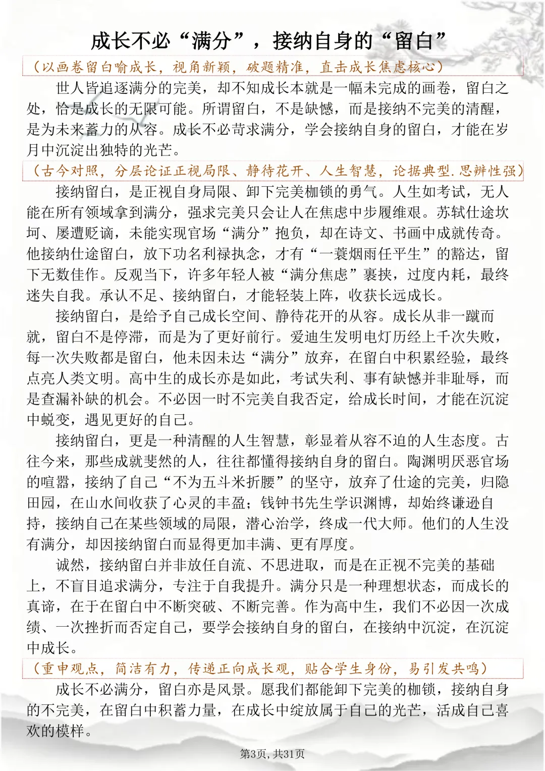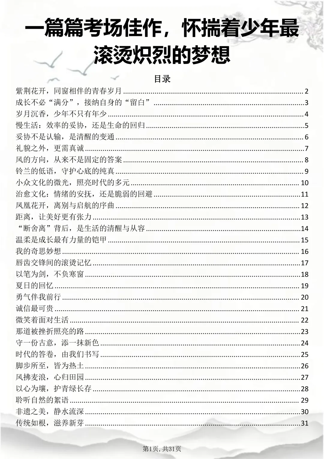 可打印的30篇考场佳作,篇篇都怀揣着少年最滚烫炽烈的梦想 本篇笔记总共30篇文章,完整电子打印版获取方式,先点右下角的爱心推荐,点了爱心推荐之后,在下方公众号私信“获取资料”,即可领取完整版打印出来背诵↓↓↓