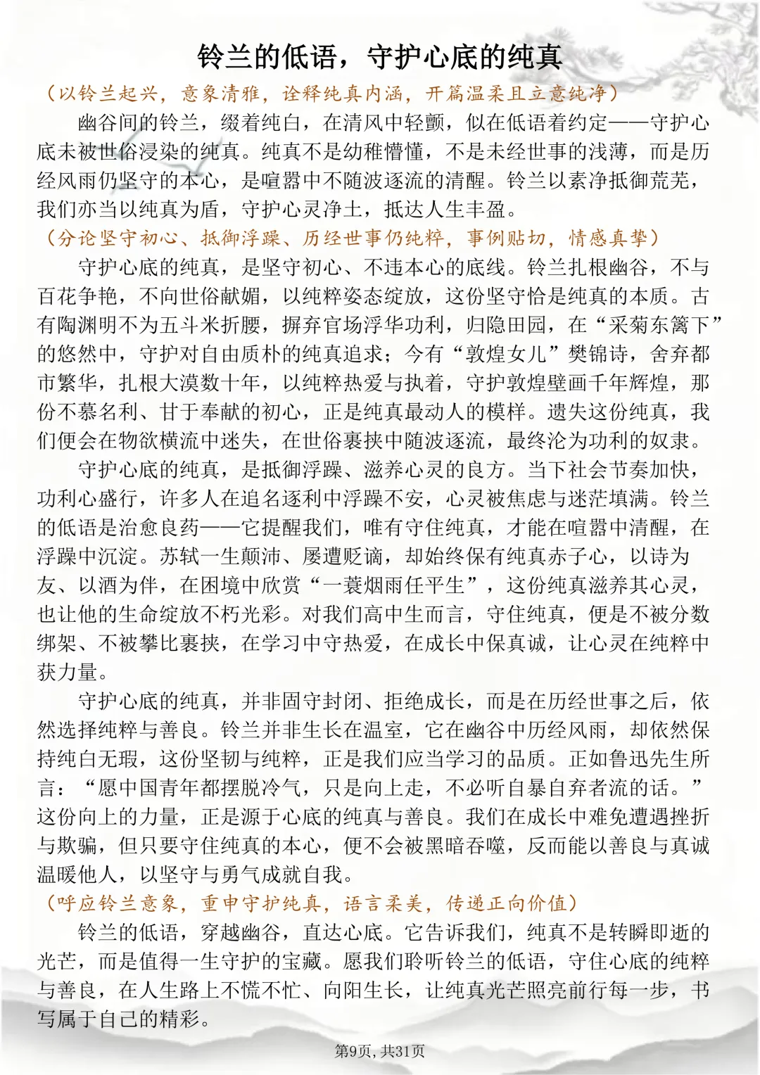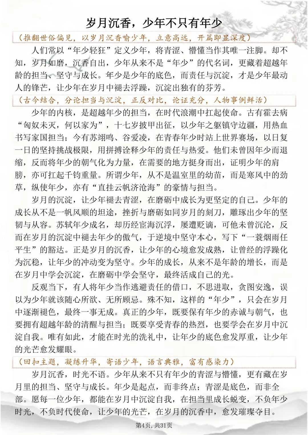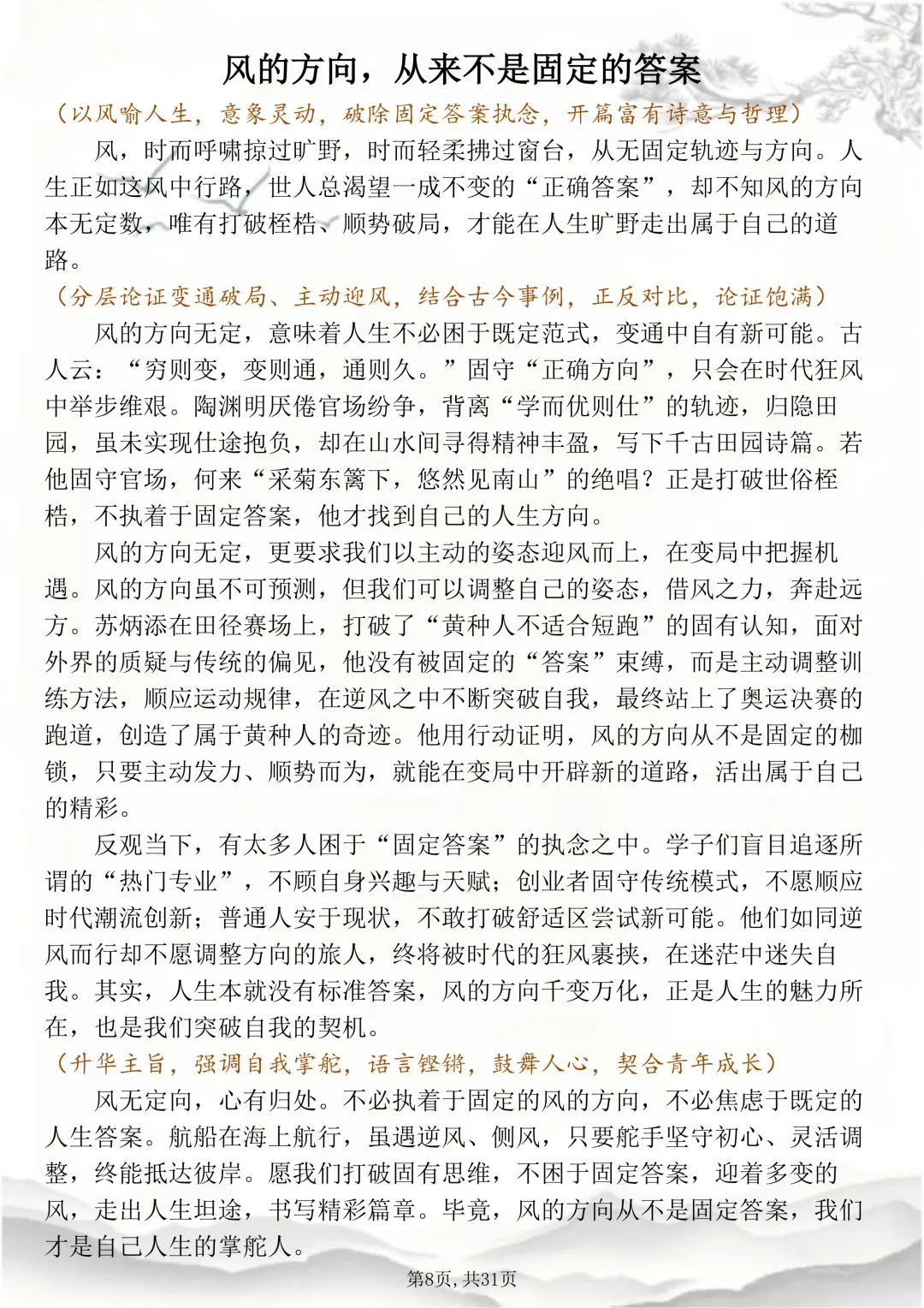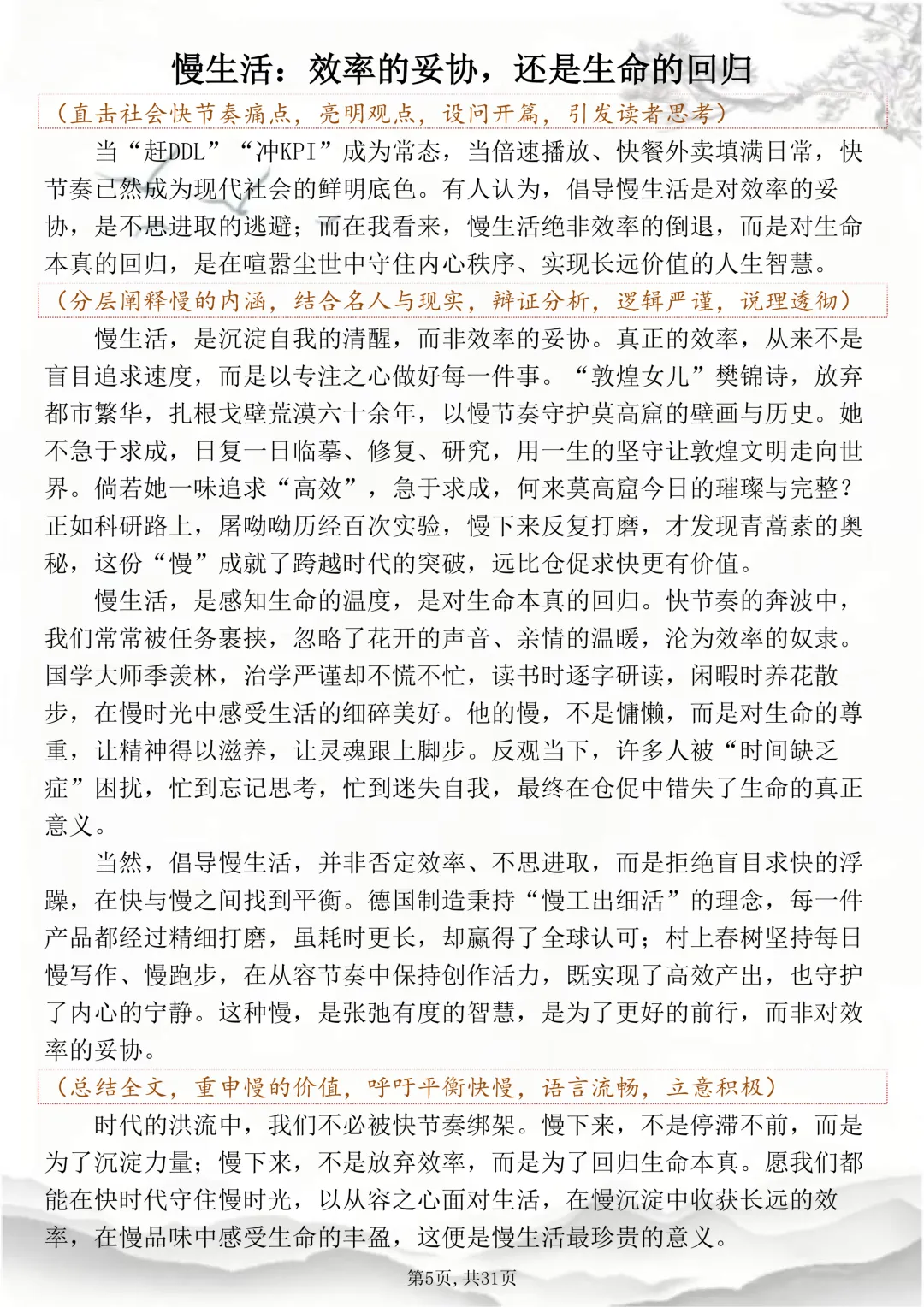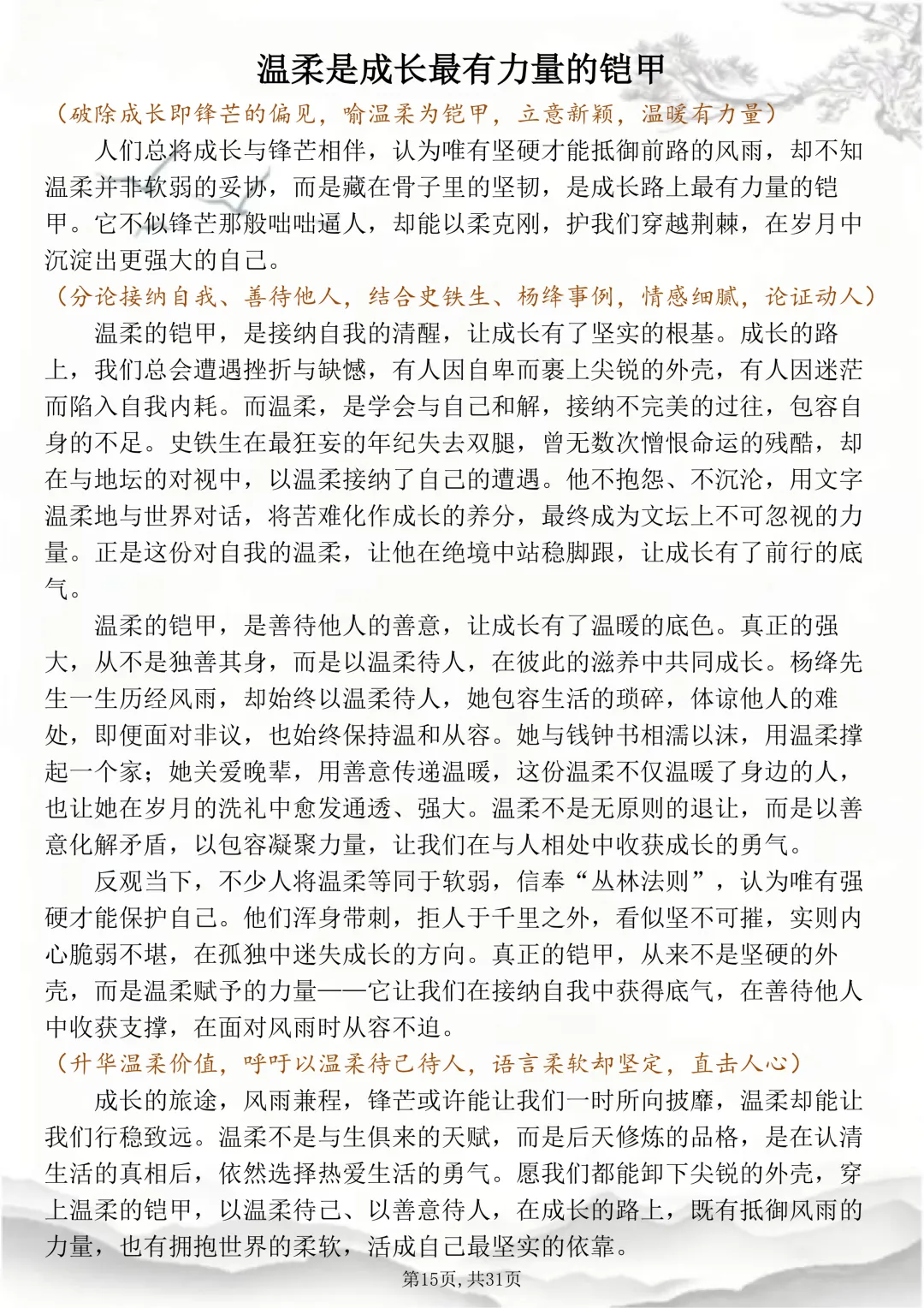 可打印的30篇考场佳作,篇篇都怀揣着少年最滚烫炽烈的梦想 本篇笔记总共30篇文章,完整电子打印版获取方式,先点右下角的爱心推荐,点了爱心推荐之后,在下方公众号私信“获取资料”,即可领取完整版打印出来背诵↓↓↓