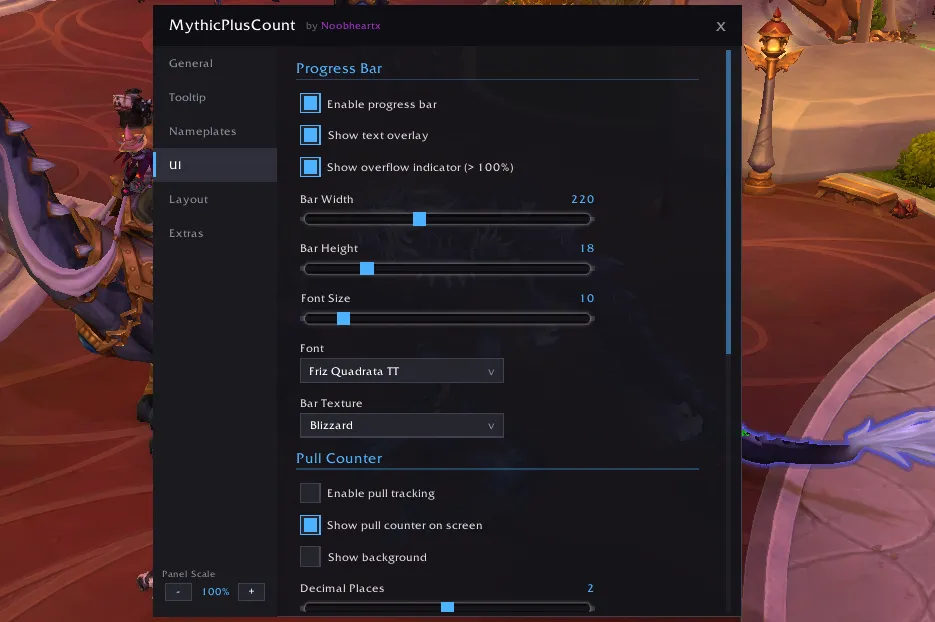 魔兽世界:大秘镜进度插件,可显示每只怪的具体进度 推荐一款大秘境进度插件MythicPlusCount,可在每只怪的血条边上显示其具体加多少进度,以及总进度(精确到小数点后两位)。 在各大插件平台搜索 MythicPlusCount安装即可,无需设置即可直接使用。 进入游戏输入 /MPC可打开设置页面,可修改字体颜色、大小、位置等功能,唯一的缺点是目前没有汉化版。