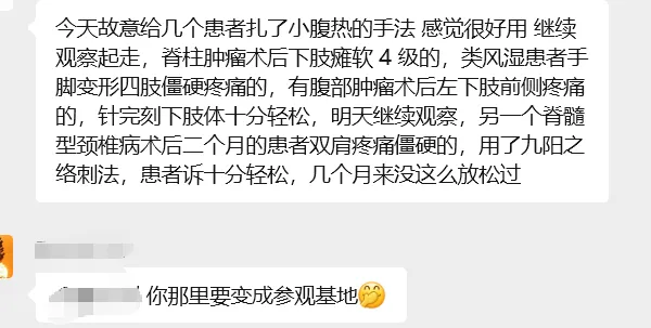 比如小腹热的扎法,一般性的男科妇科问题就解决的不错。也可以更加广泛的使用。比如这一个成都培训过的中医博士,脑子灵活。各种基本都用小腹热手法。