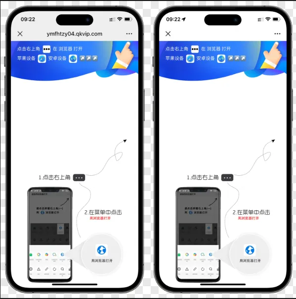 使用本系统域名在微信 /QQ 打开会直接显示一个跳转页,需要跳转到浏览器才能显示正常内容