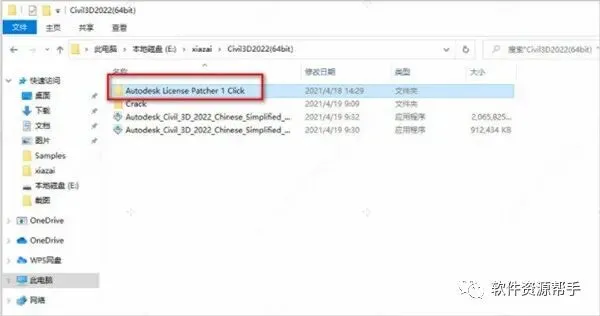 7、打开安装包解压后的Civil3D2022(64bit)文件夹,双击打开Autodesk License Patcher 1 Click文件夹;