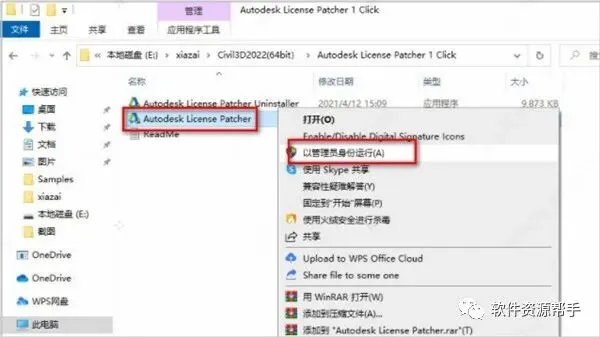 8、鼠标右击Autodesk License Patcher选择以管理员身份运行;