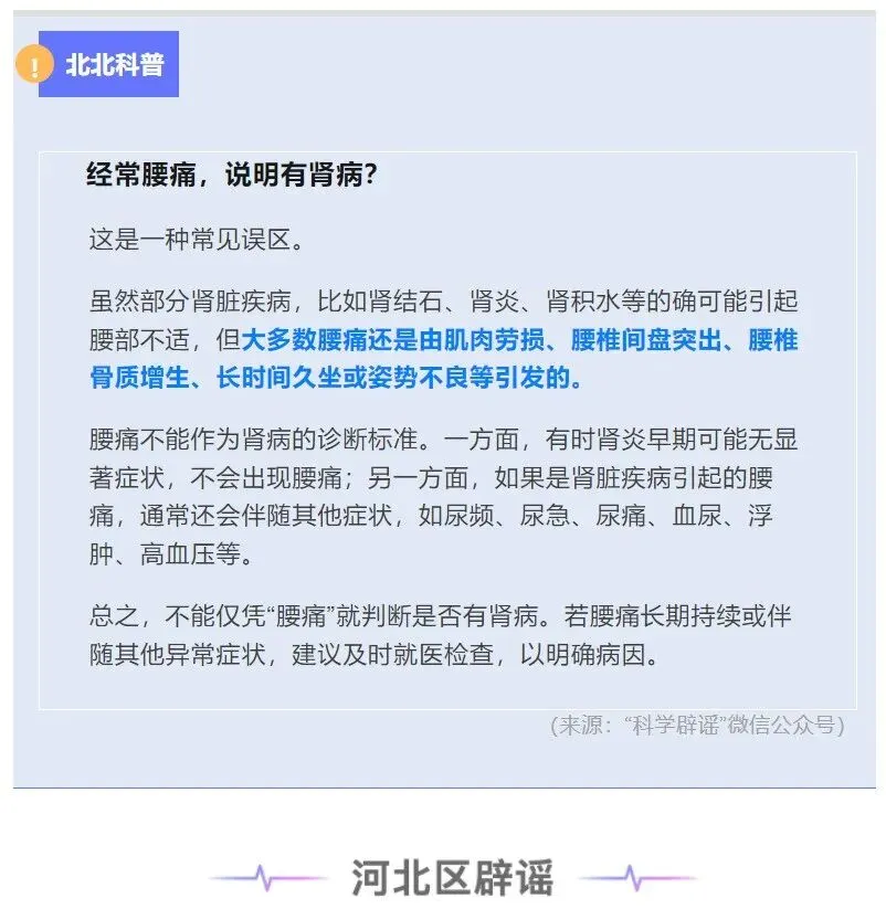 北北科普 | 经常腰痛,说明有肾病?