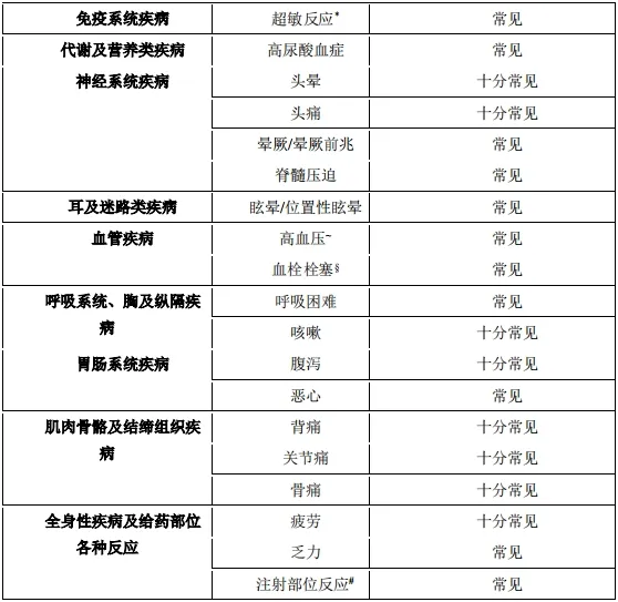 表3. 接受注射用罗特西普治疗 β–地中海贫血患者的药物不良反应