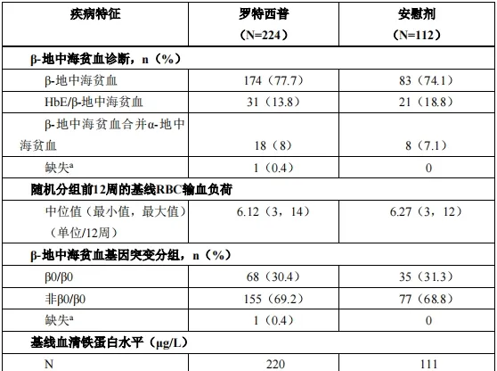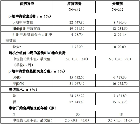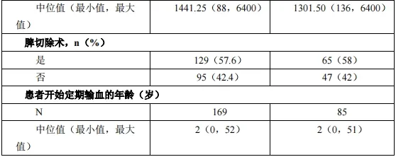 表4. BELIEVE 中 β–地中海贫血患者的基线疾病特征