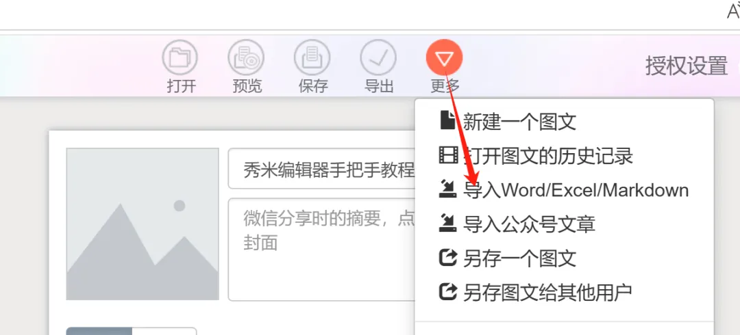在秀米里边可以直接导入存在电脑上的文档或者表格。