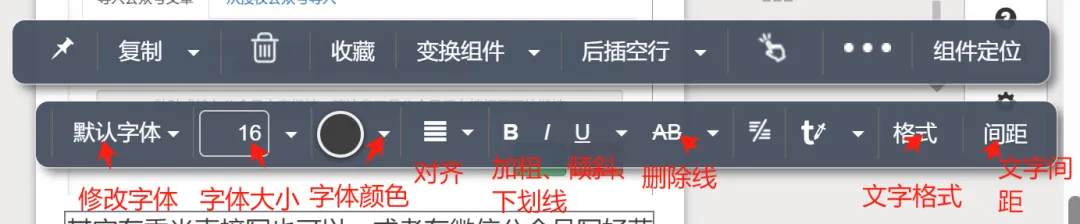 新建文本开始编辑或者复制好文本后,可以看见文字编辑栏。