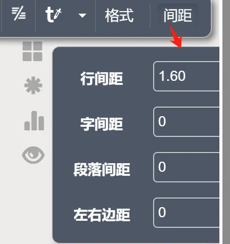 调整间距很简单,你可以在一开始就把全文的间距调整好。在刚新建好空白就点击间距,调整好参数,这样编辑文字或者粘贴、导入的文字的全文就都是这个参数。