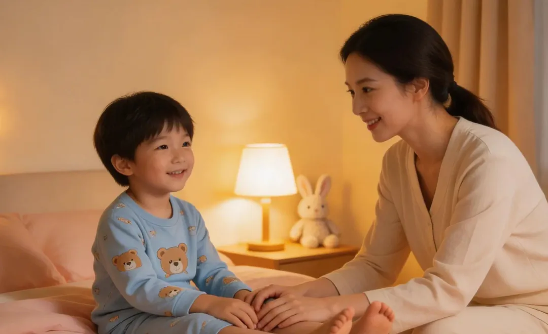 家长每天睡前可以给孩子做简单的推拿,通过外力疏通经络。
