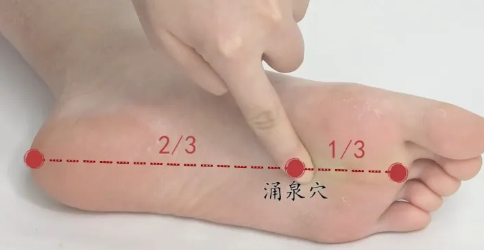 • 按涌泉穴: