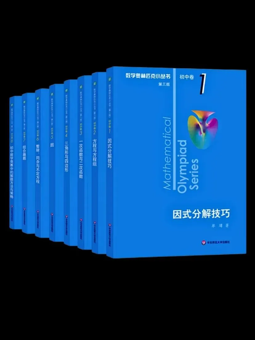 涉及课内难题和部分竞赛题目。难度跳跃较大,章节划分并非完全按照书本章节顺序。走中考路线的娃不用刷。想走自招可以试试看(更推荐下面的新方法)不建议过早使用,校内基础打牢了再考虑同步练习。