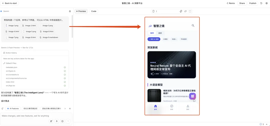 【图片:AI Studio 界面,展示代码生成过程 / 可点击预览效果】