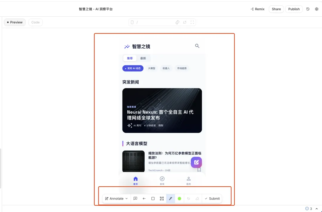 遇到 Bug 或者交互不对的地方?还是直接对话/涂鸦描述,它帮你修。