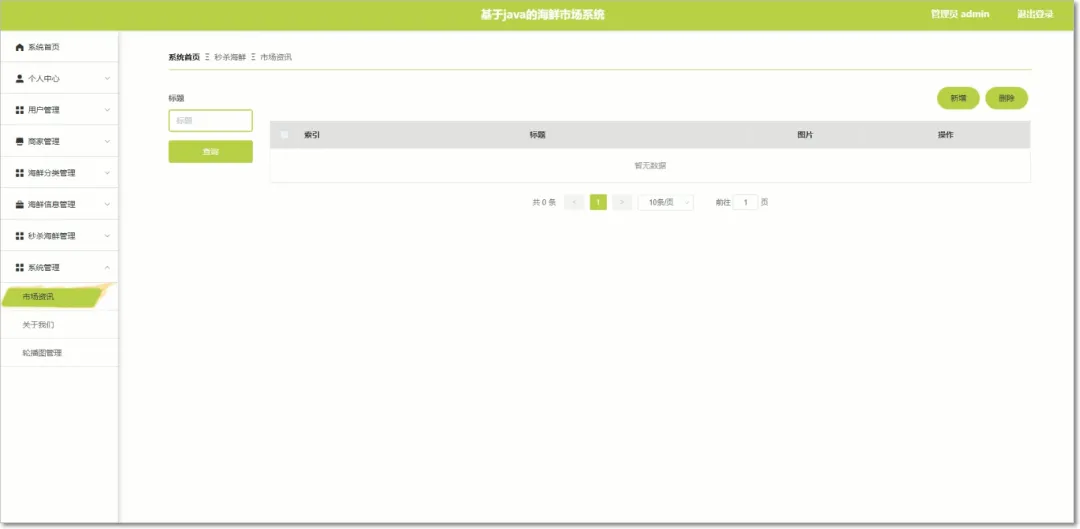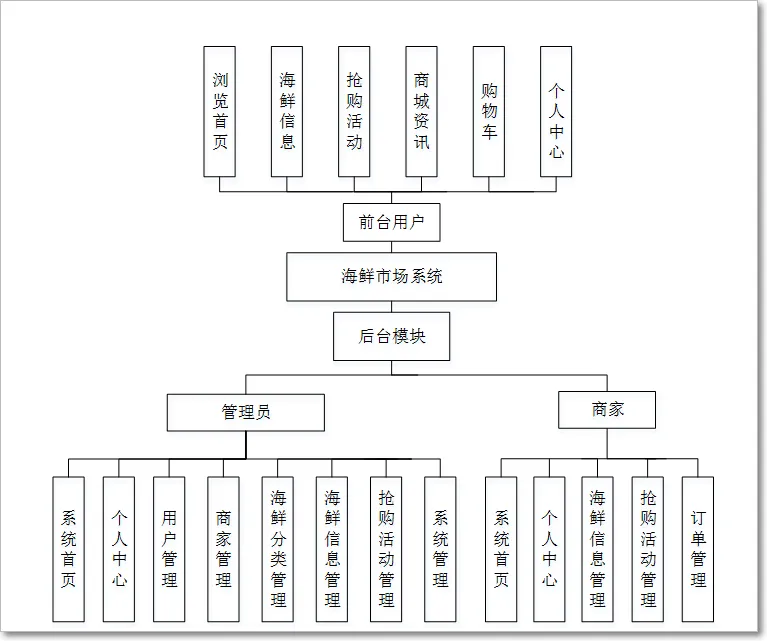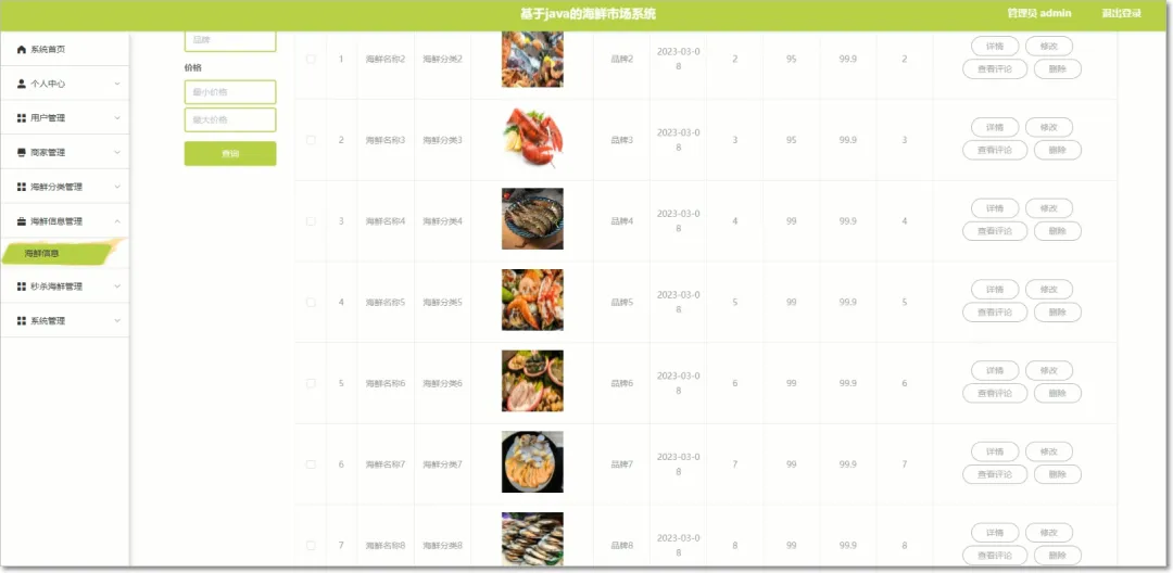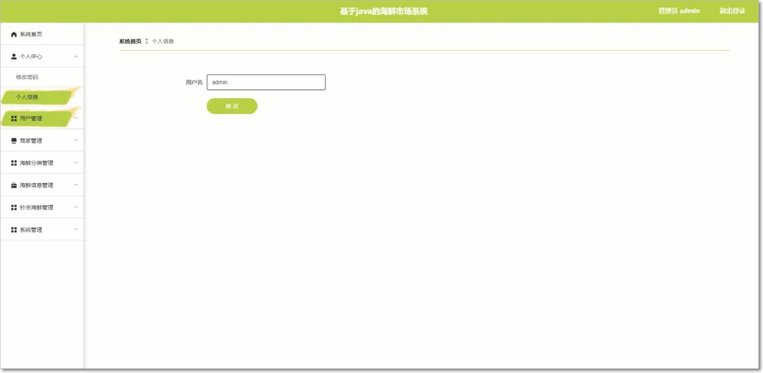 管理员的功能是对用户和商家的信息进行监管,使得管理员能够管理用户、商家、海鲜分类等,并可以对这些进行修改和删除等来保证系统的整体运行。