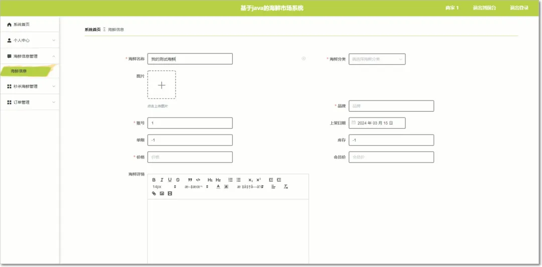 商家的主要功能是对商品信息的管理,可以通过系统去调整商品的价格、介绍、图片等信息。并能够通过系统获取到订单的情况。