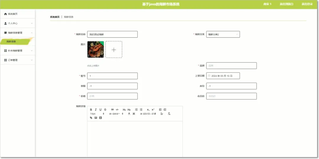 【万字文档+源码】基于springboot与vue海鲜市场系统
