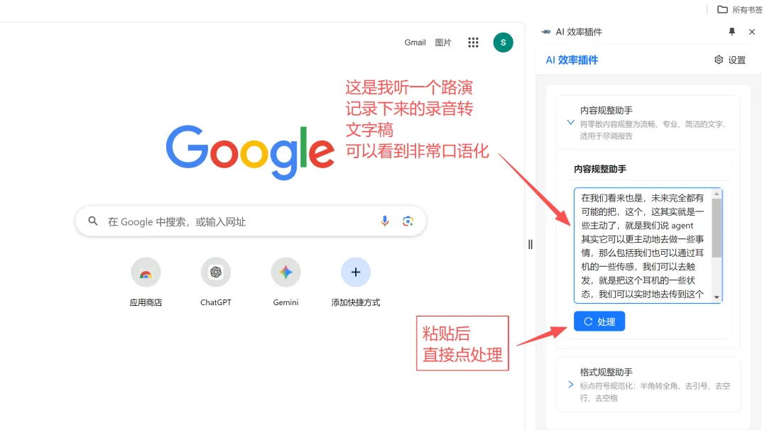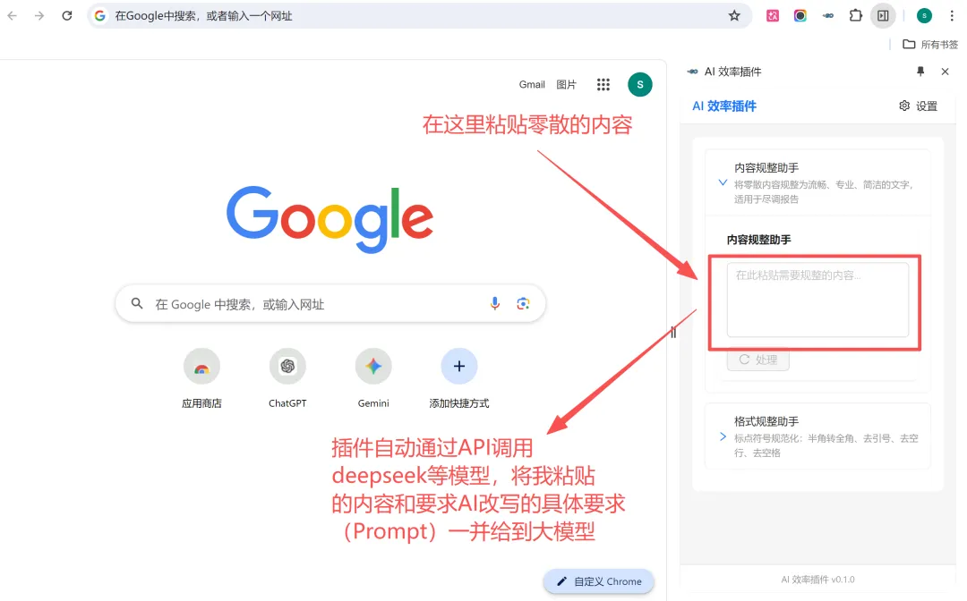 打开插件侧边栏,内容自动进输入框(或者自己粘贴) -