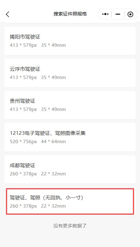 第一步:选择证件类型打开小程序后,直接搜索”驾驶证”或”电子驾驶证”,系统会自动匹配所需的照片规格。