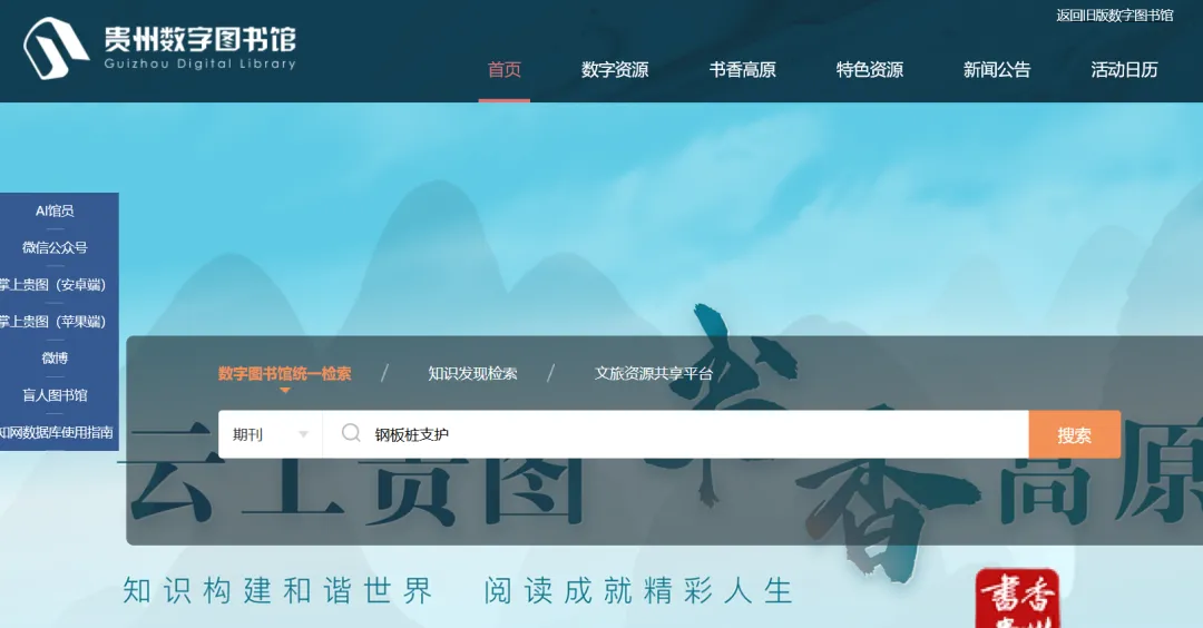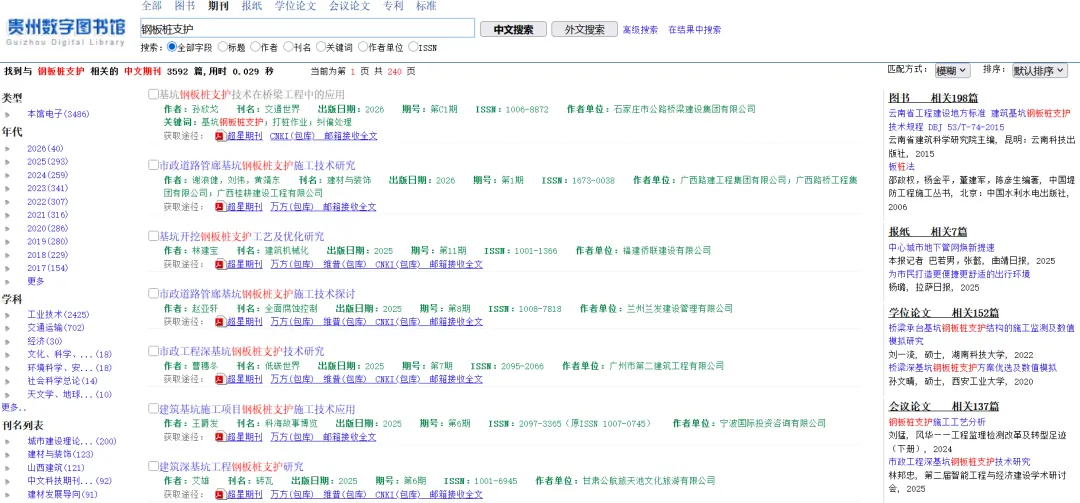 贵州数字图书馆是官方公益平台,面向公众提供免费的数字资源服务,包含各类期刊、论文、文献资源,工程类、土建类、结构类、岩土类相关内容都能查到。