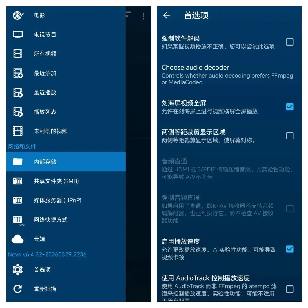Nova Video Player还可以直接播放局域网、硬盘里存的电影,不用先下载到手机就能观看,字幕清晰好调、加载稳定,声音更清晰,播放高清视频时流畅不卡顿,界面简单顺手,不管是看本地视频还是网络上的影片都很流畅,整体体验不输付费软件,日常手机看片完全够用。