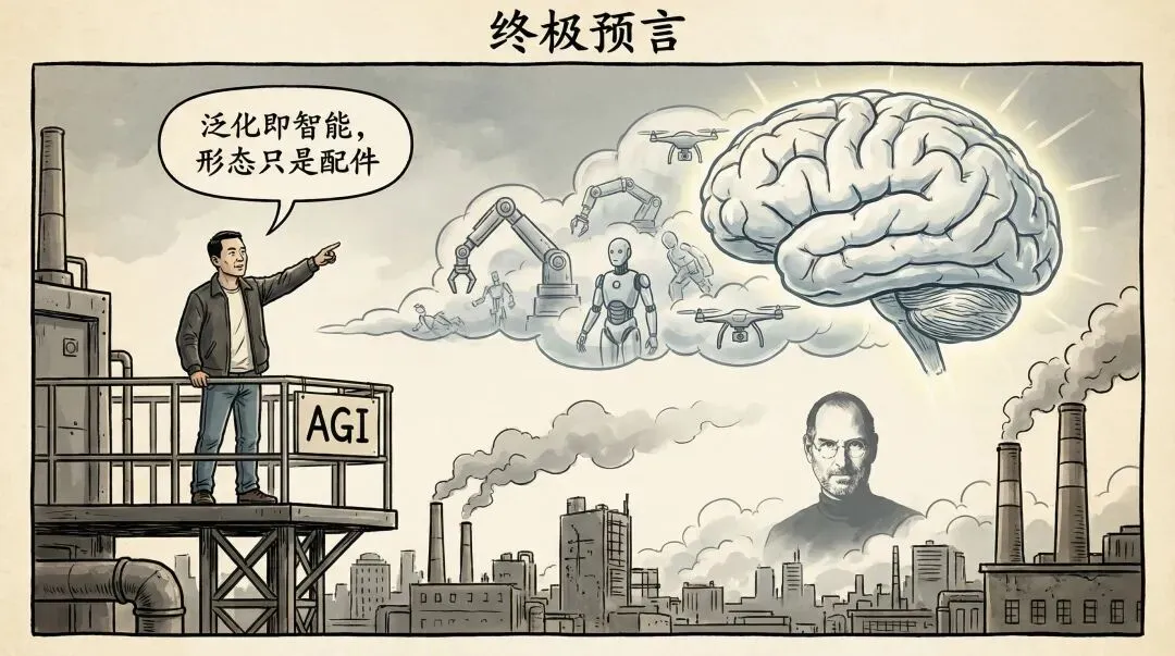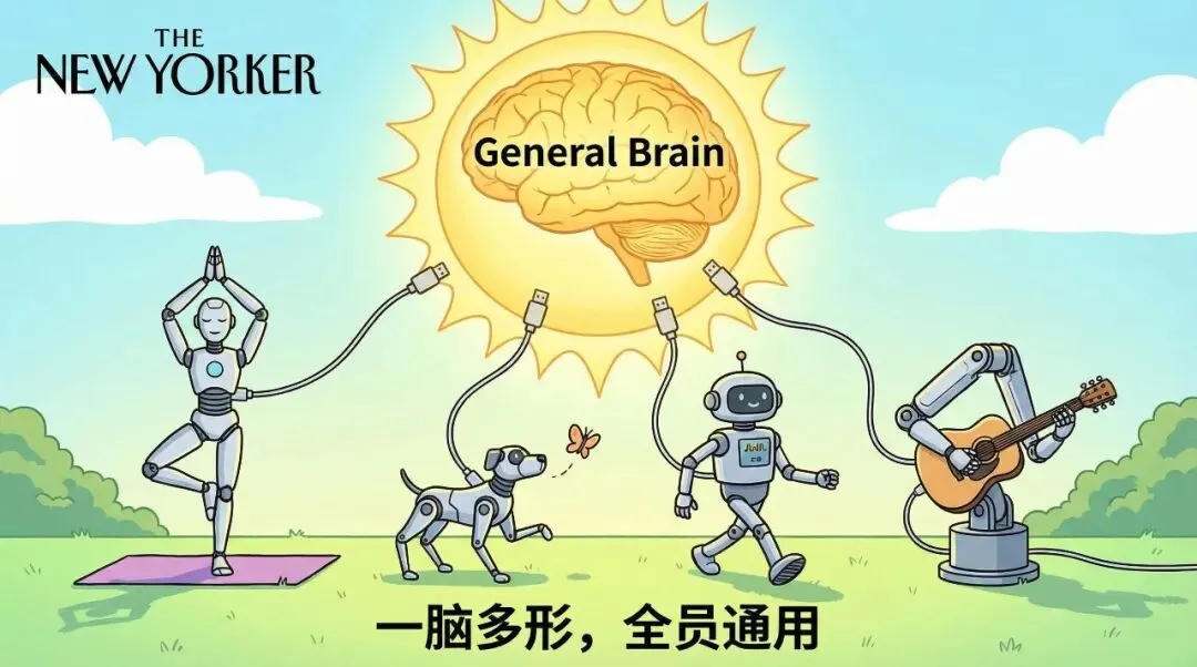 “这种’通用大脑+跨形态泛化’并非渐进式改良,而是范式革命。本质是将机器人从’专用设备’重构为通用智能平台,这与智能手机取代功能手机的范式跃迁高度相似。计算范式的转移必然重塑物理终端——每一次机器大脑的进化,都会逼着它的’躯体’重新长出一套完全不同的形态。”