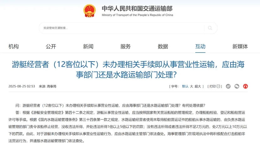 啥叫权威,这样的回复说明也叫权威吗?游艇租赁运营啥时候变成水路载客运输呢?