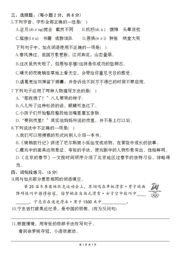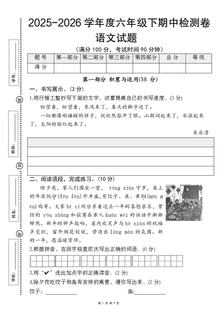六年级下册语文《期中检测卷》有答案可打印练习,期中逆袭
