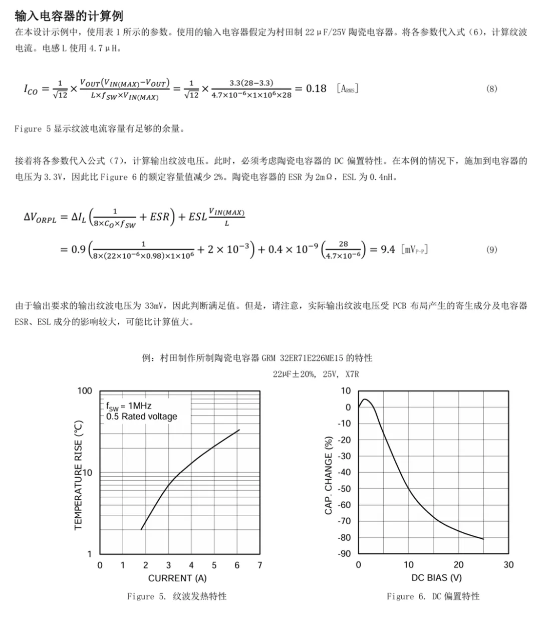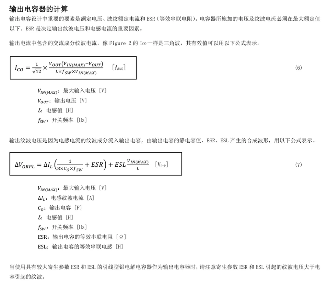 输出电容设计中重要的要素是额定电压、波纹额定电流和ESR(等效串联电阻)。电容器所施加的电压及纹波电流必须在最大额定值以下。ESR是决定输出纹波电压和电感电流的重要因素。本文给出了考虑纹波的经验公式,大家可以自己代入看看身边的电容设计的对不对,好不好。