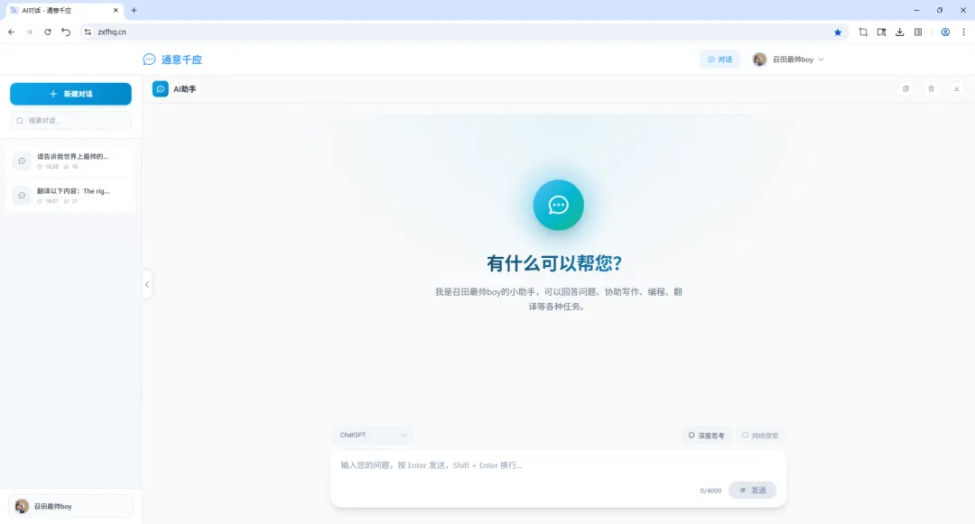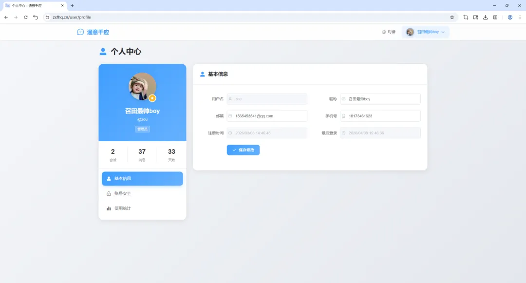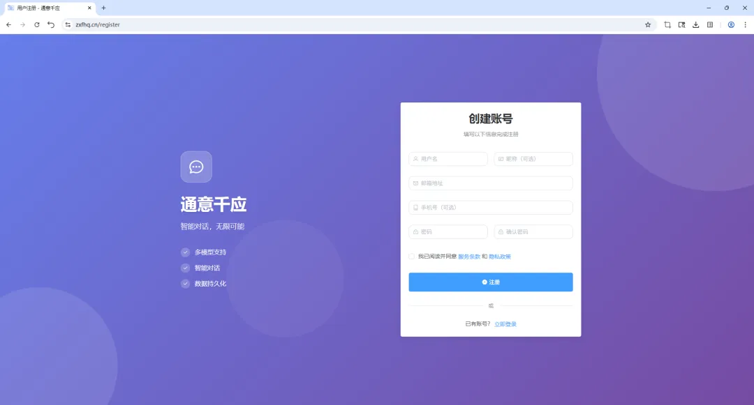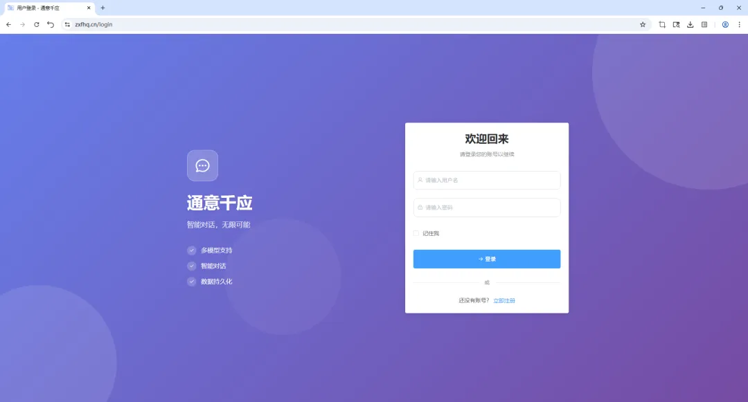通意千应是一款基于现代技术栈构建的AI智能对话平台,旨在为用户提供流畅、智能、安全的人机交互体验。系统采用前后端分离架构,支持多模型AI对话、会话管理、用户管理和完整的后台运营体系。