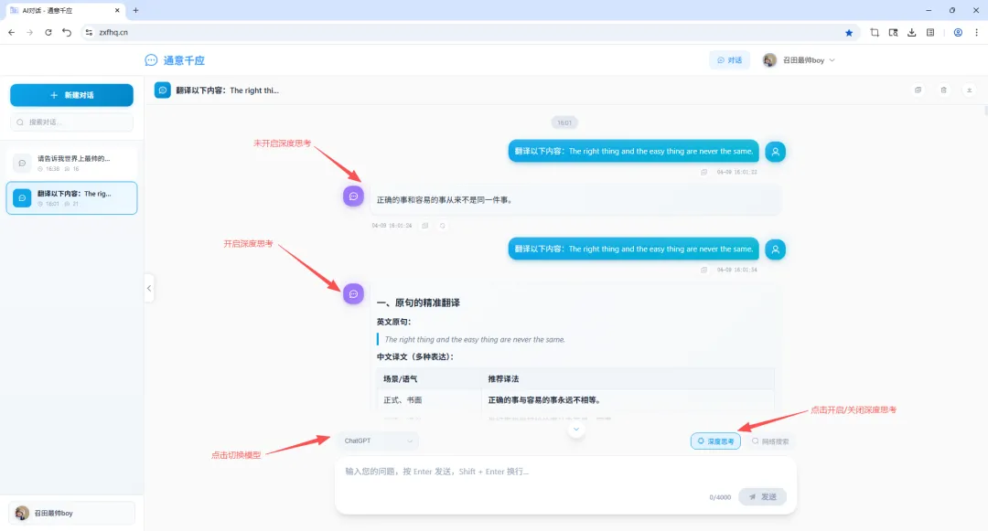 | AI能力 | 多模型支持、深度思考、流式响应、超时提醒 |