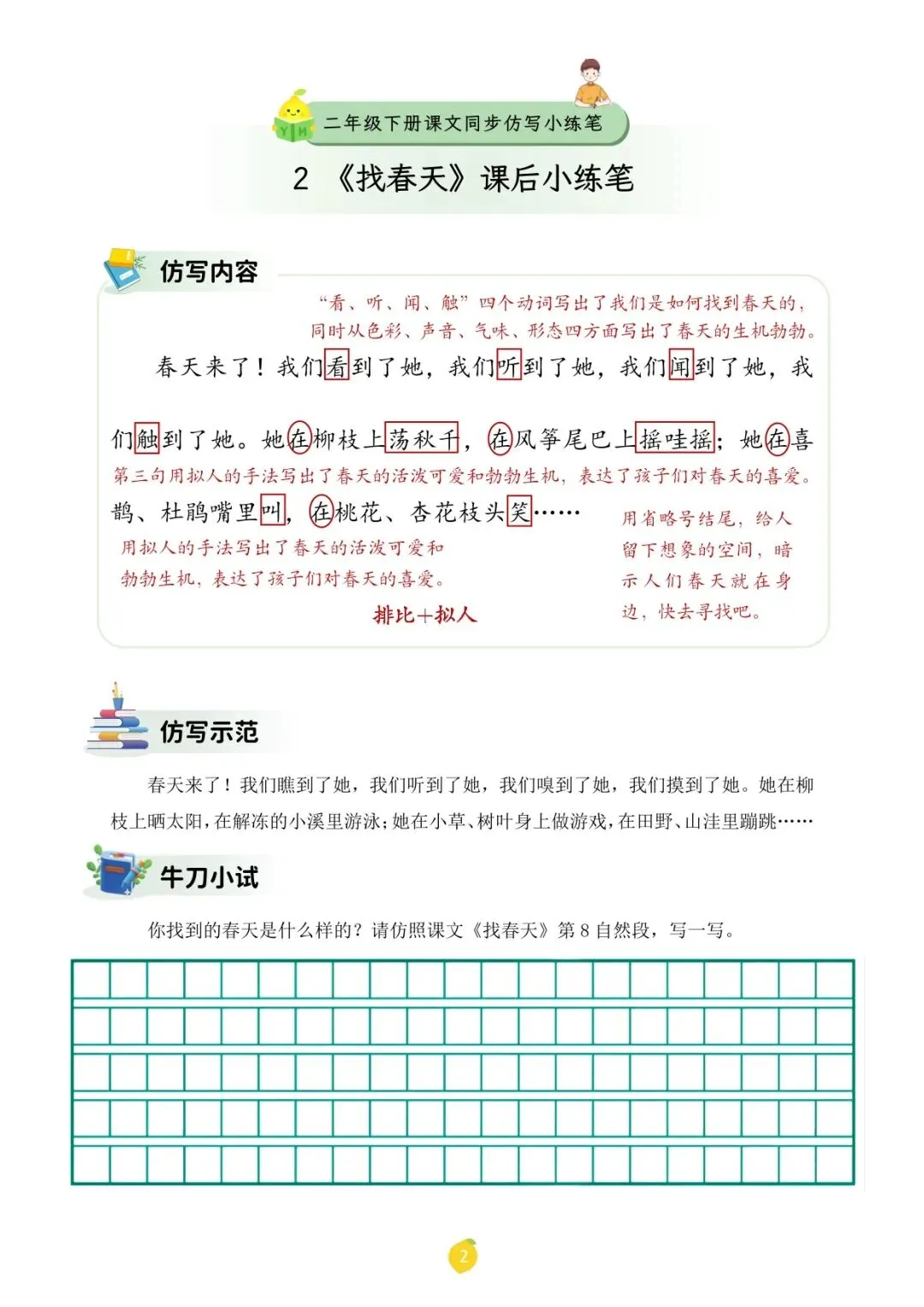 可下载丨二年级下册语文课文仿写小练笔,电子版可打印