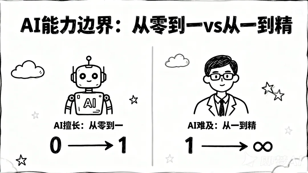 AI解决的是”从零到一”的问题,但它解决不了”从一到精”的问题。